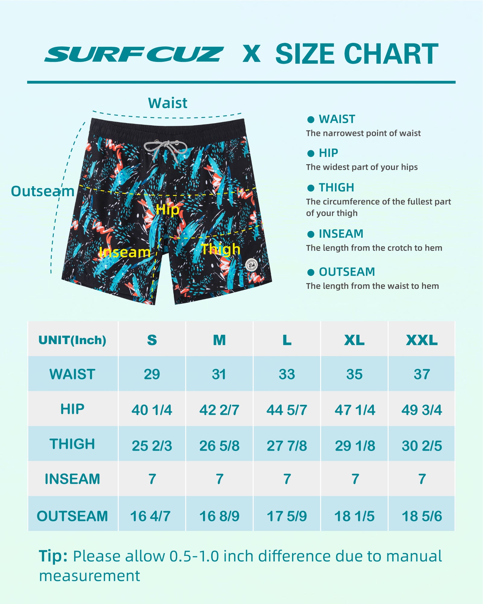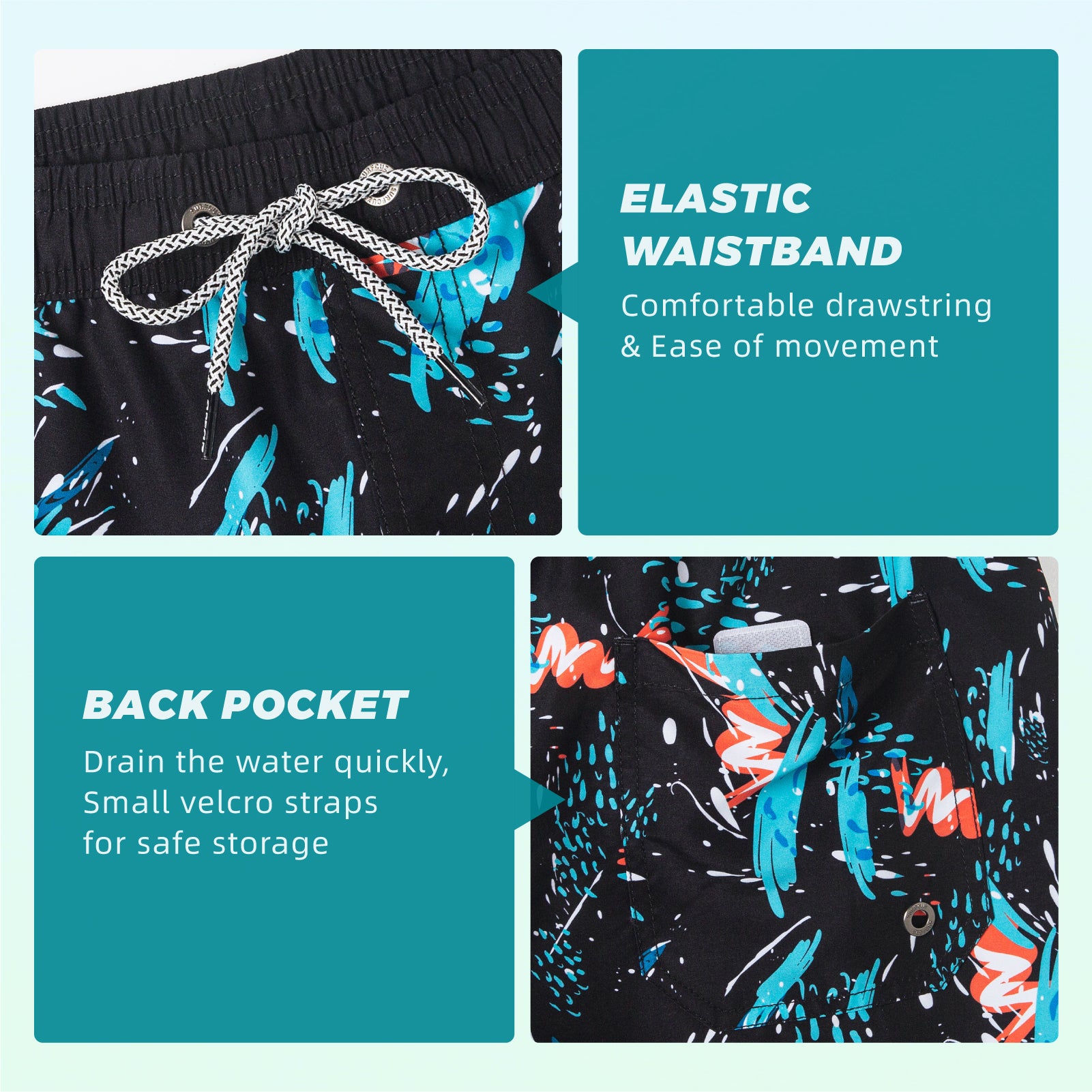 Traje de baño Hombre - Diseño estampado floral negro naranjo y celeste - Secado rápido