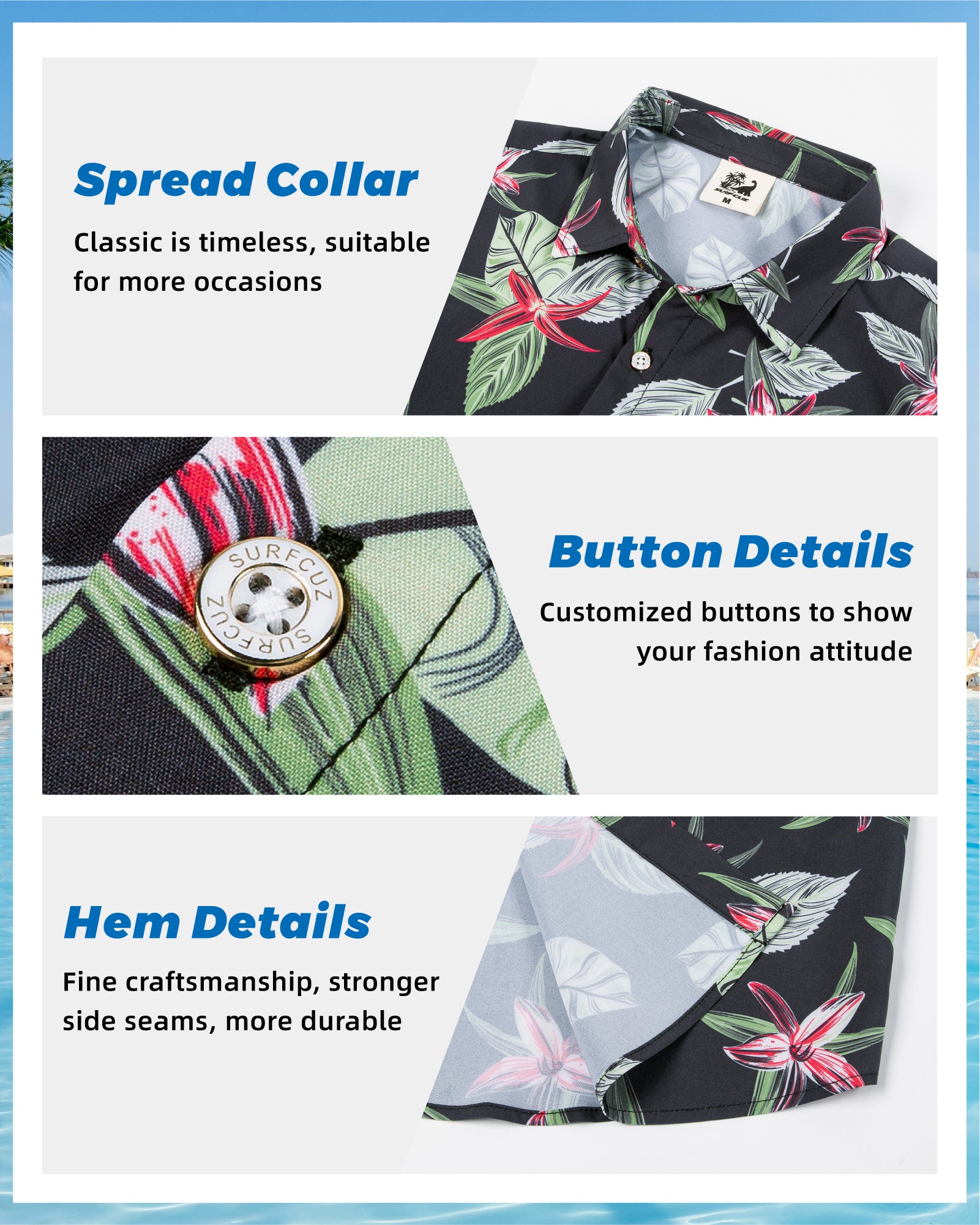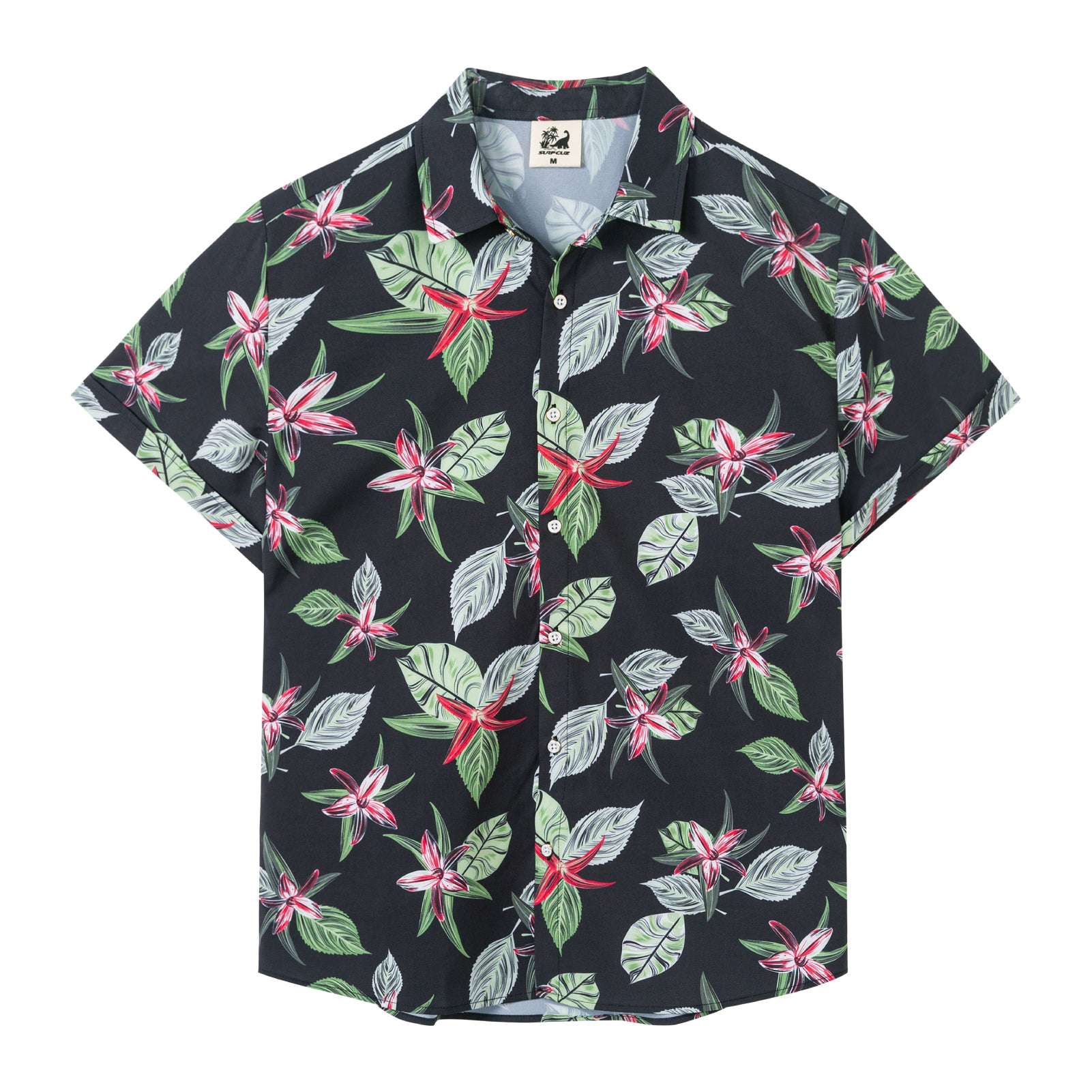 Camisa Guayabera Hombre - Diseño Hojas Tropical - color Negro