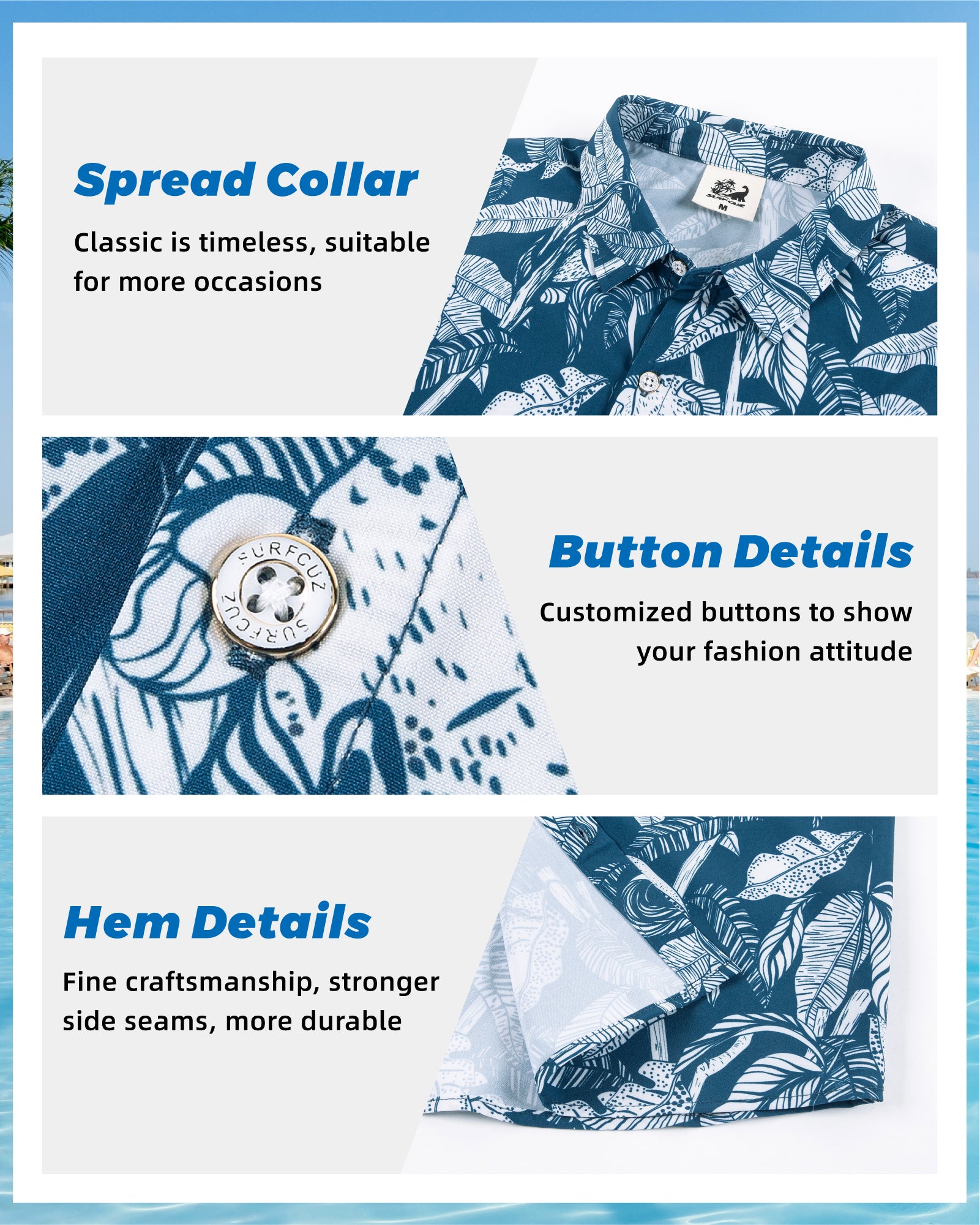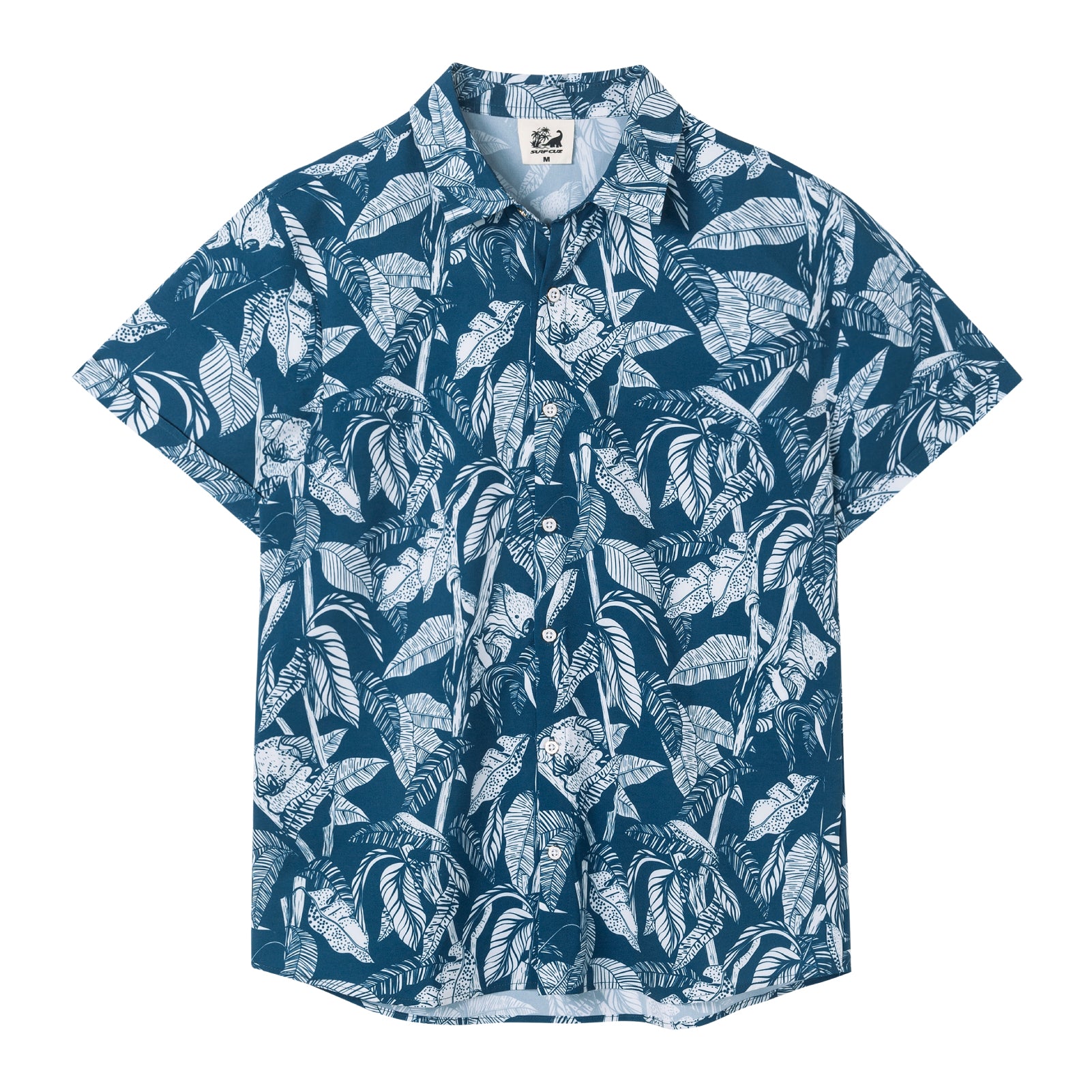 Camisa Guayabera Hombre - Diseño Flores Tropicales - color Azul y Blanco
