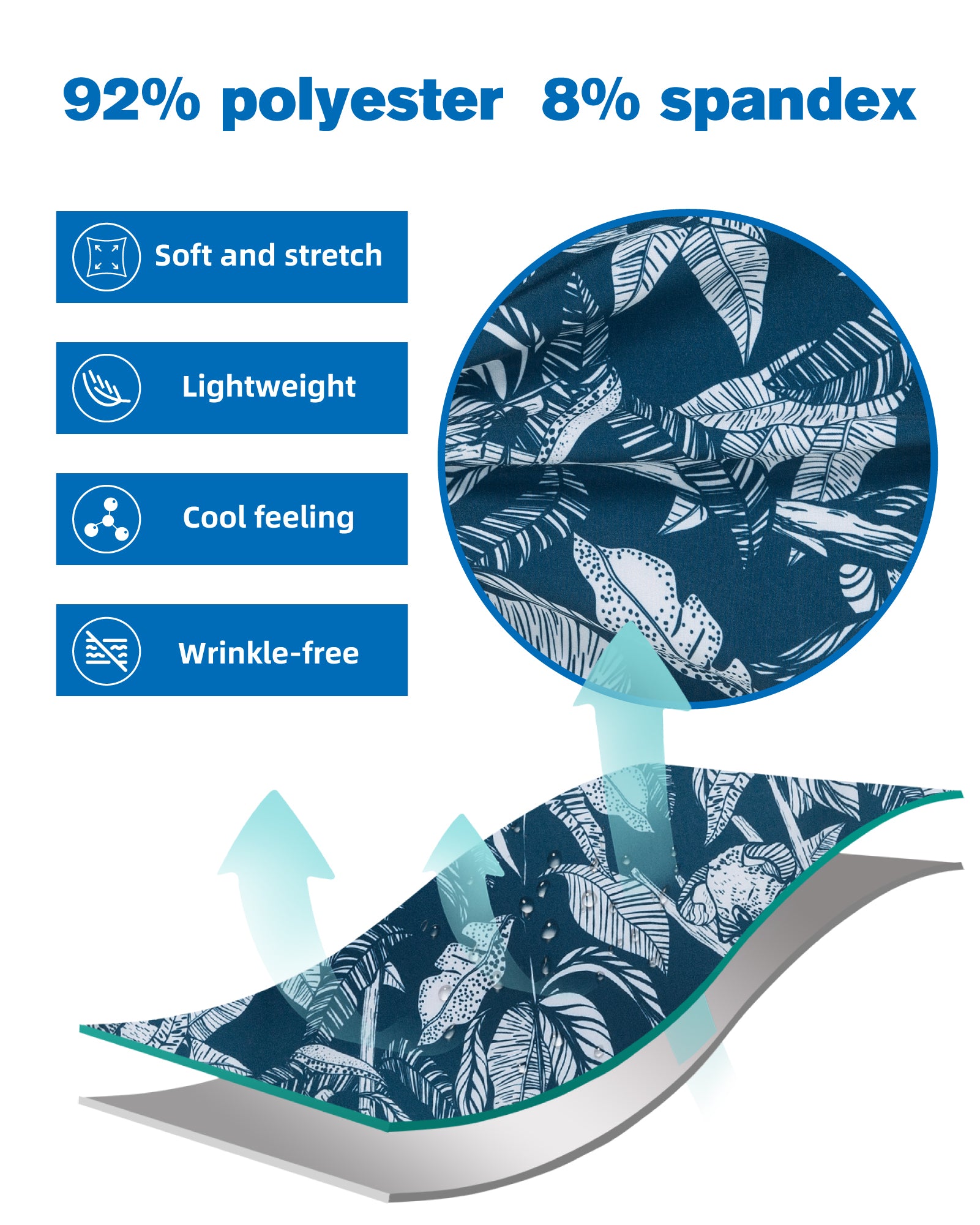 Material: 92%Poliéster / 8%Elastano.